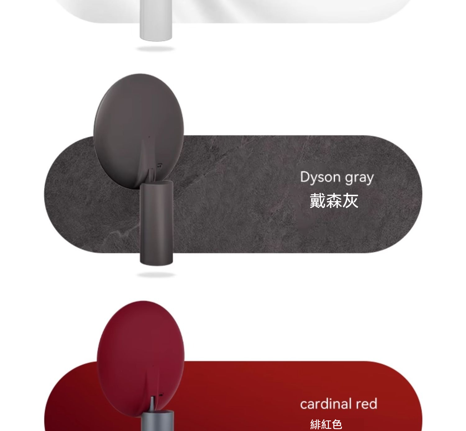 產品颜色:緋紅色、戴森灰、珍珠白