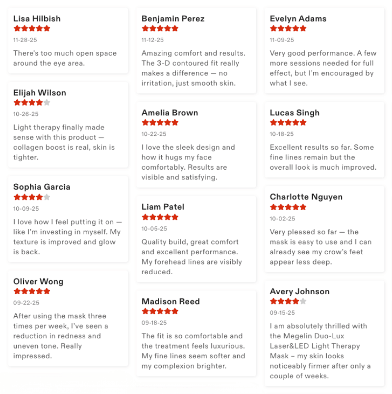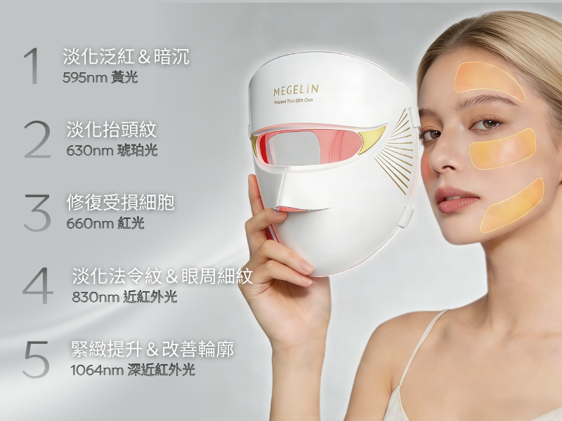 A:不會。所有 Megelin 紅光設備 不含 UV 波段,只使用對肌膚有益的紅光與近紅外光。