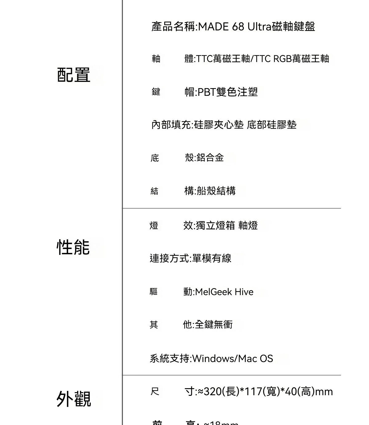 產品名稱:MADE 68 Ultra磁軸鍵盘