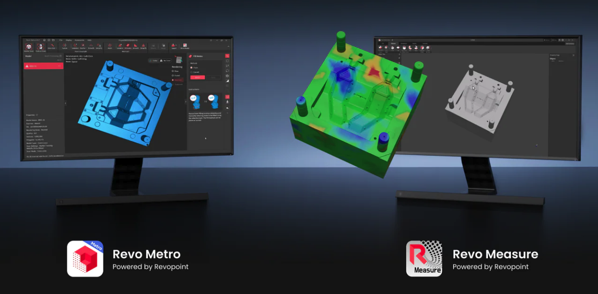 在 Revo Metro 建立的模型可直接匯入至 Revo Measure。Revo Measure 是專業的 3D 測量軟體,能透過點雲或網格數據與 CAD 模型或工程圖進行比對,評估形狀、尺寸與品質。