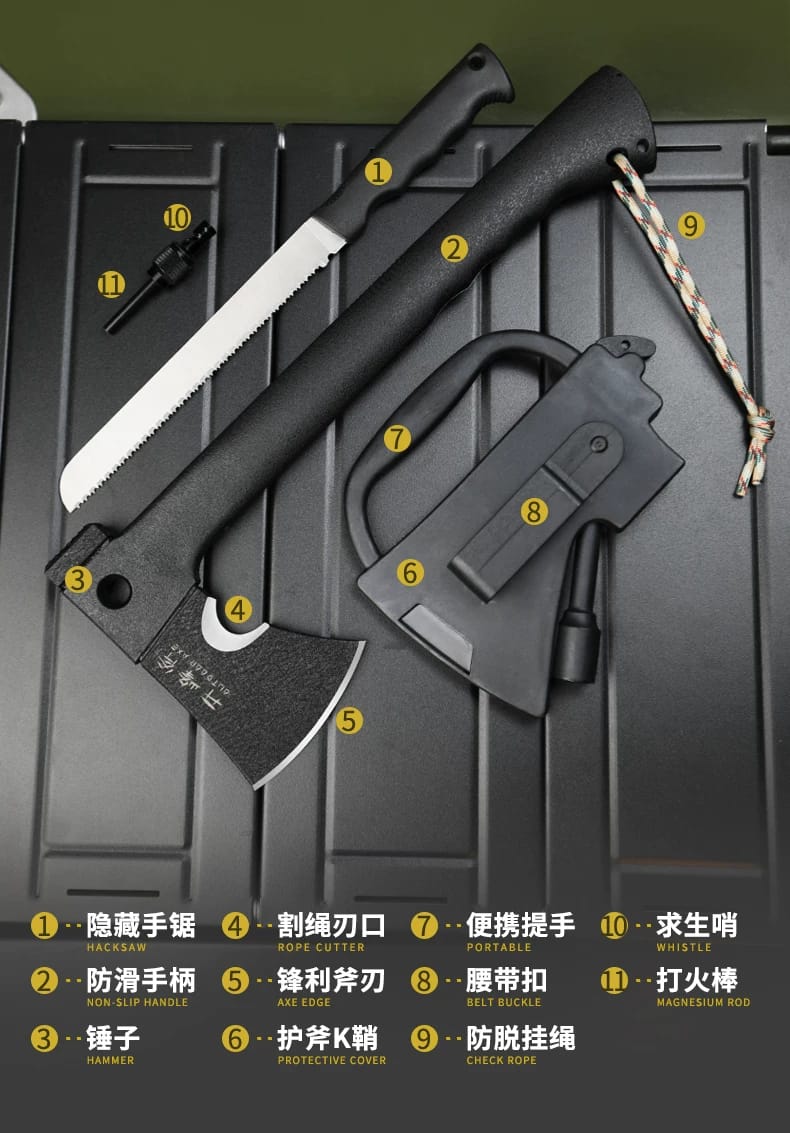 強調「一器多用、以靜制動、借勢發力」——劈柴、修枝、搭帳、防身皆可一氣貫通