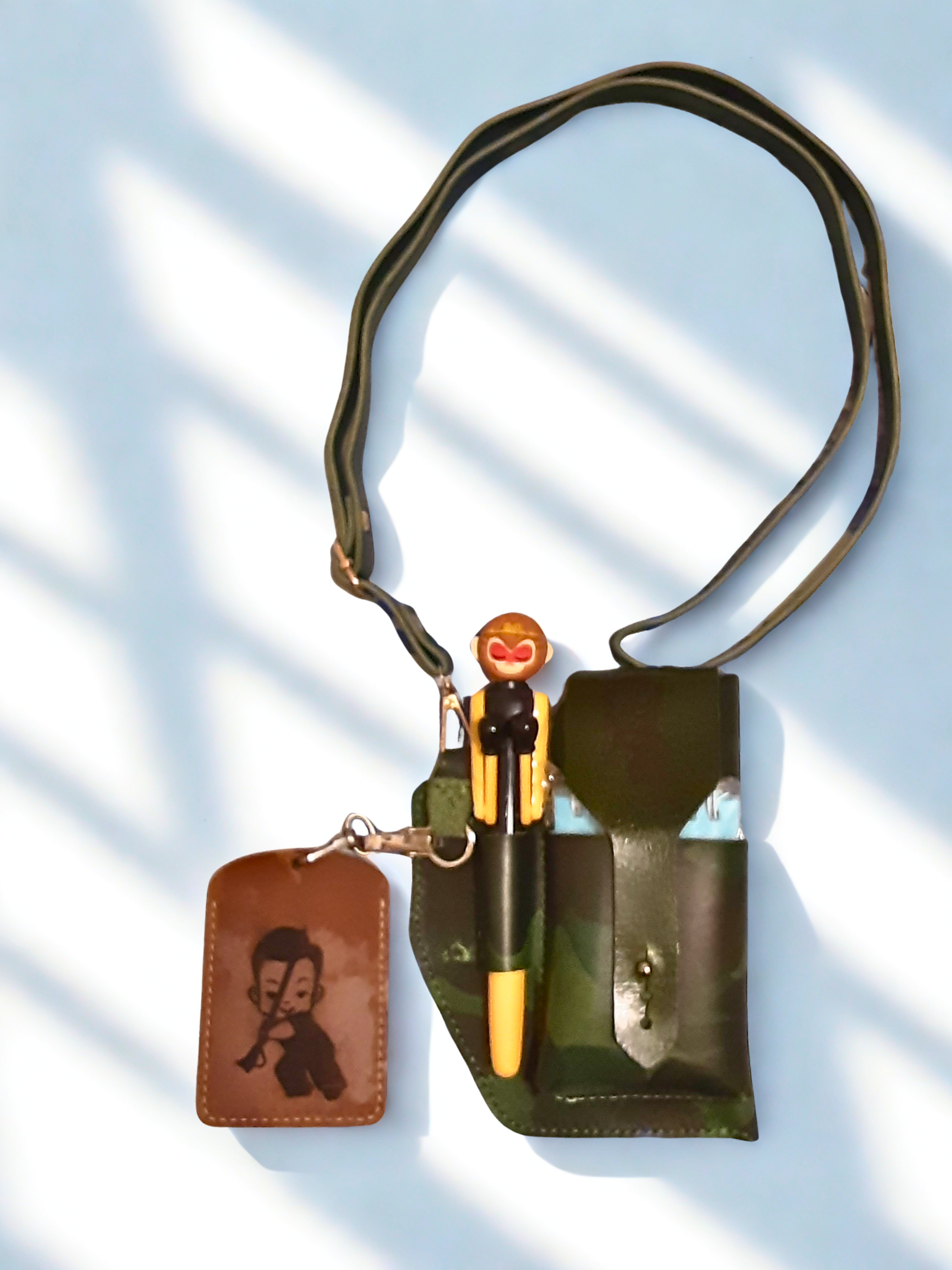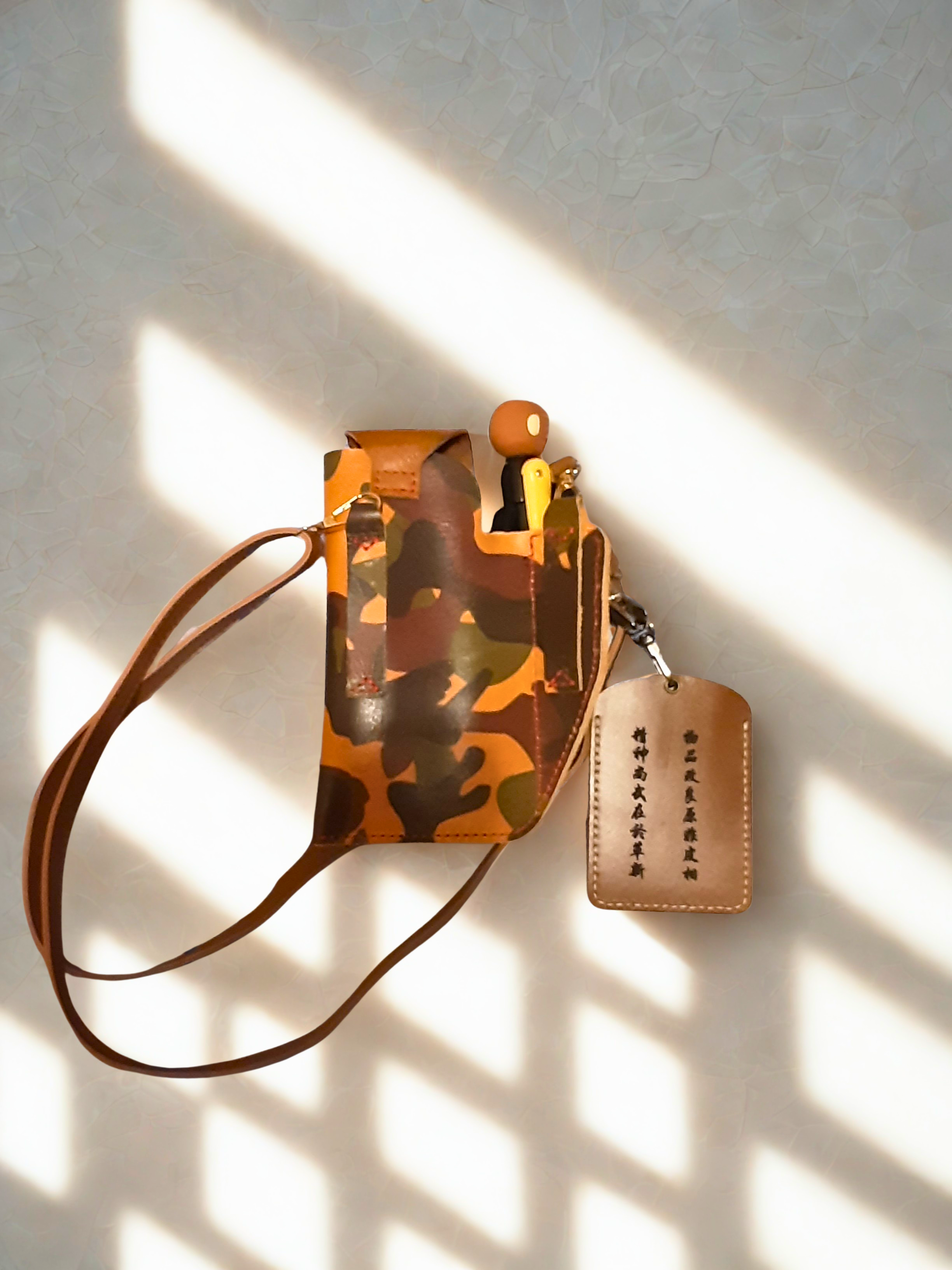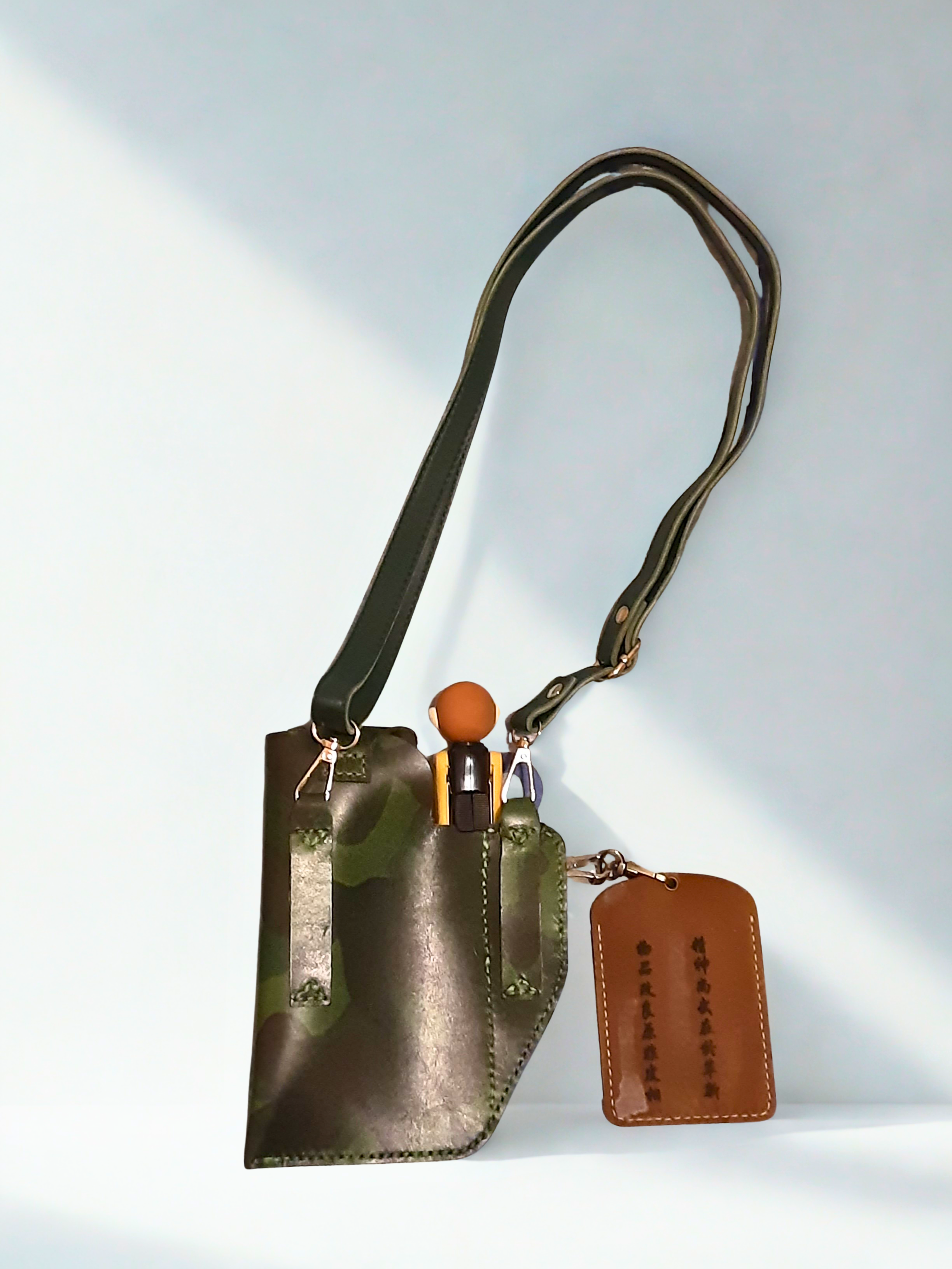 真皮迷彩斜揹袋,質感硬挺、紋理獨特,軍事風設計兼具時尚與實用,輕量耐用,日常通勤首選。