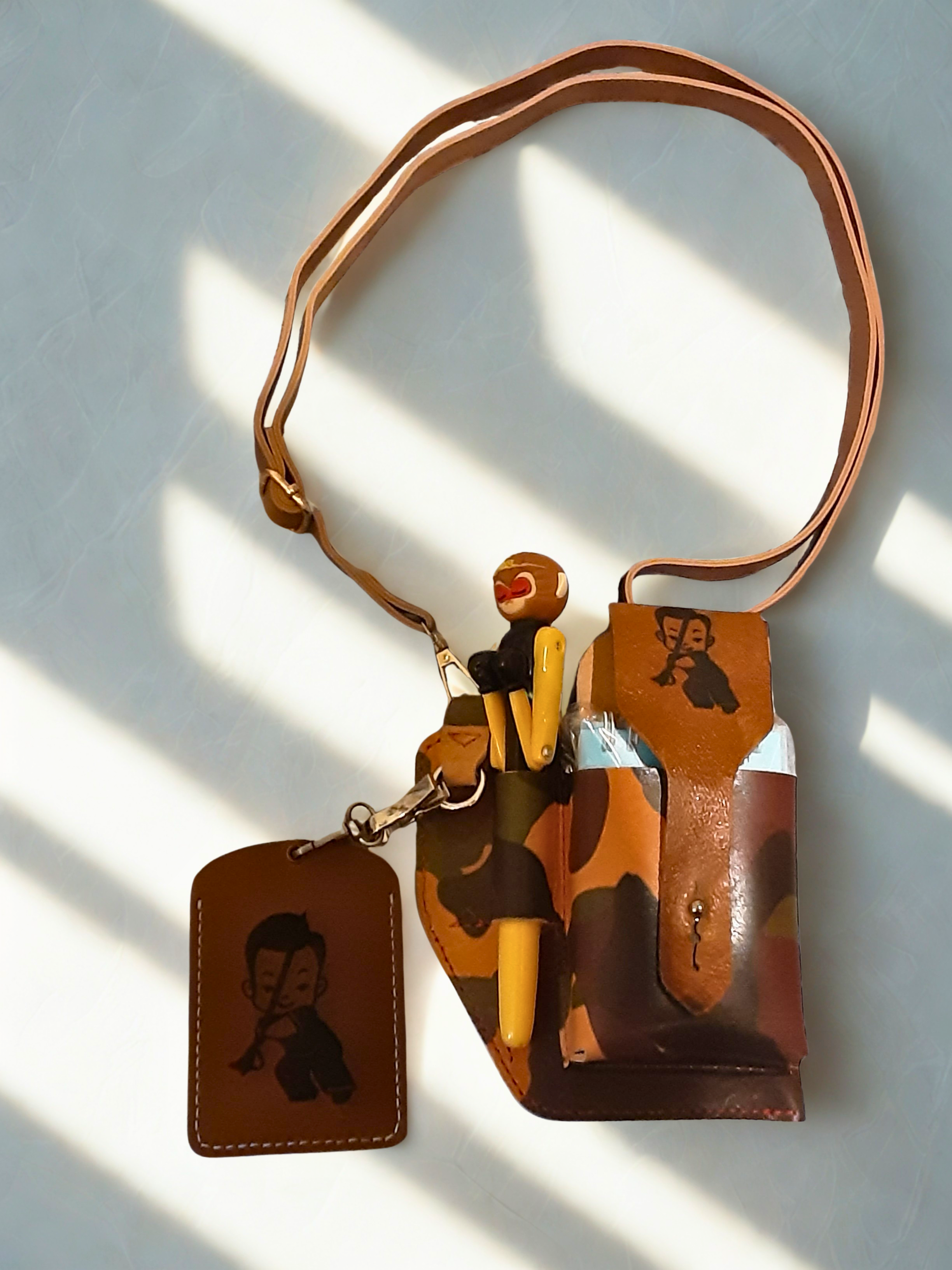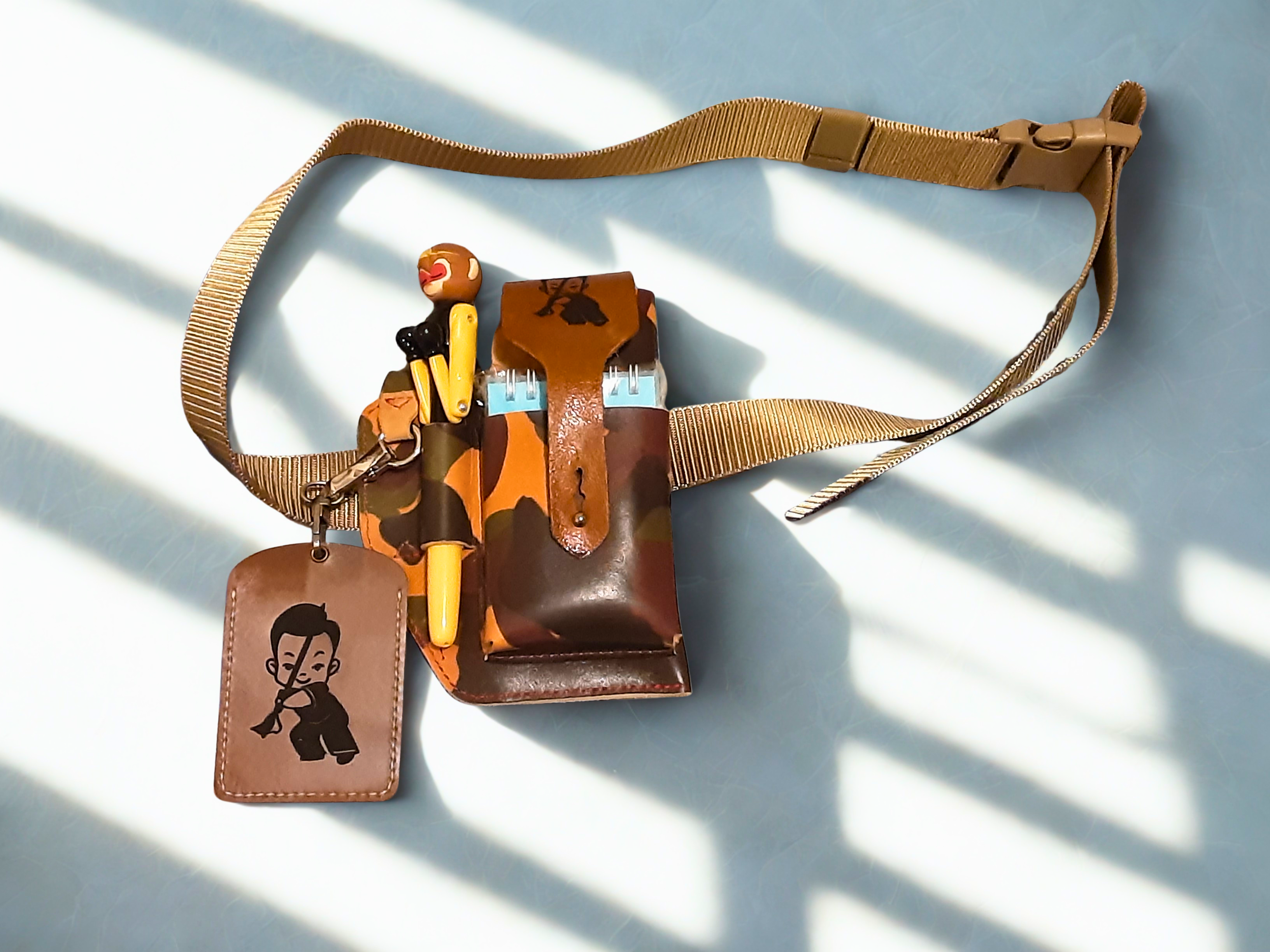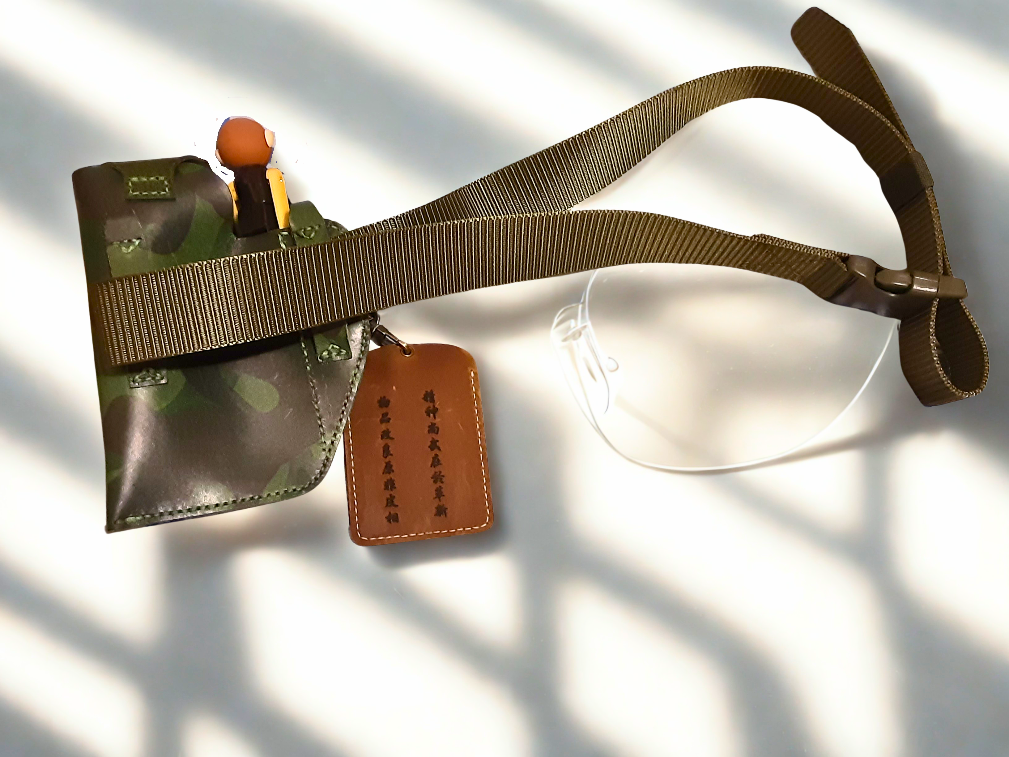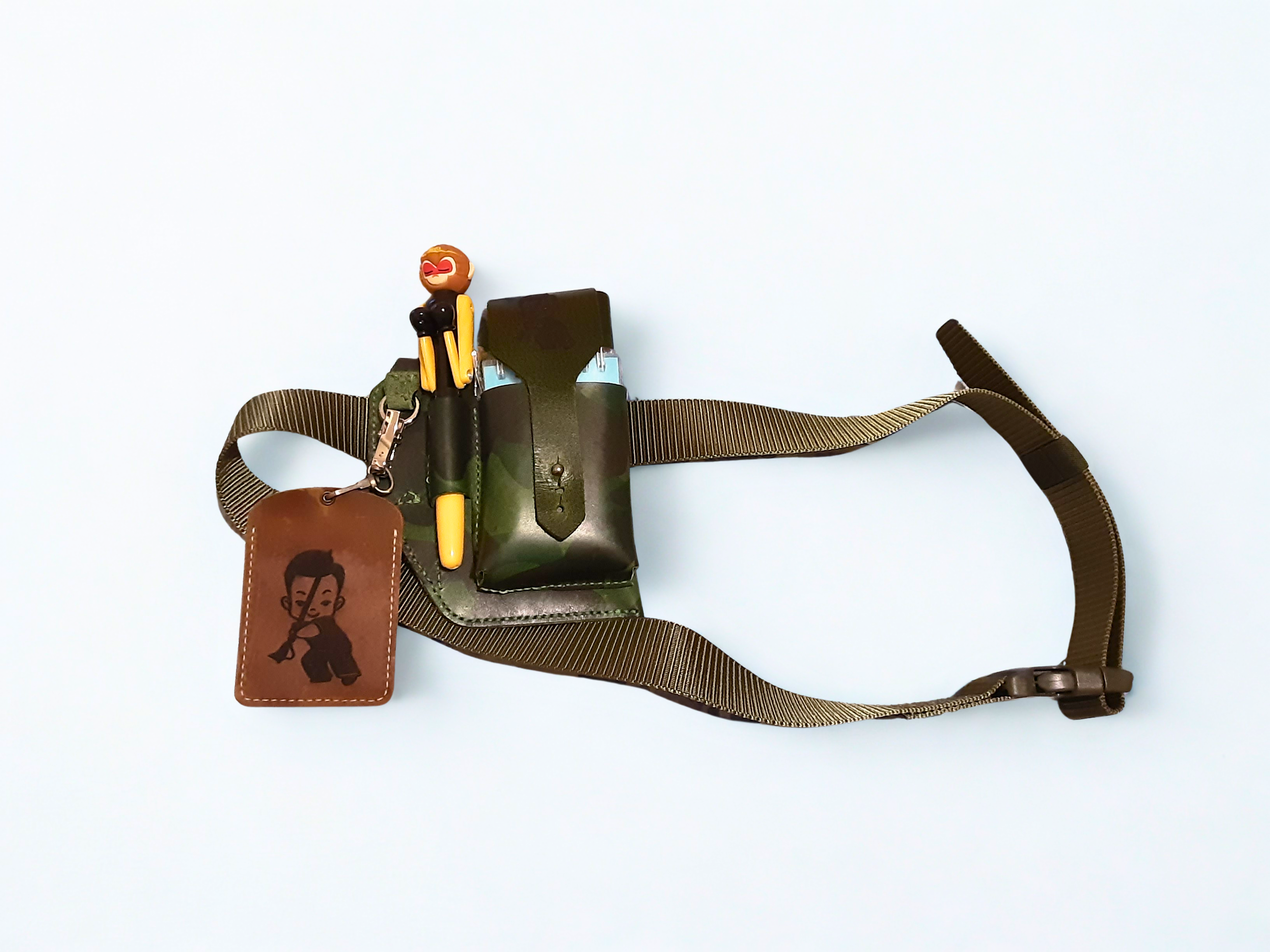 真皮迷彩斜揹袋,質感硬挺、紋理獨特,軍事風設計兼具時尚與實用,輕量耐用,日常通勤首選。