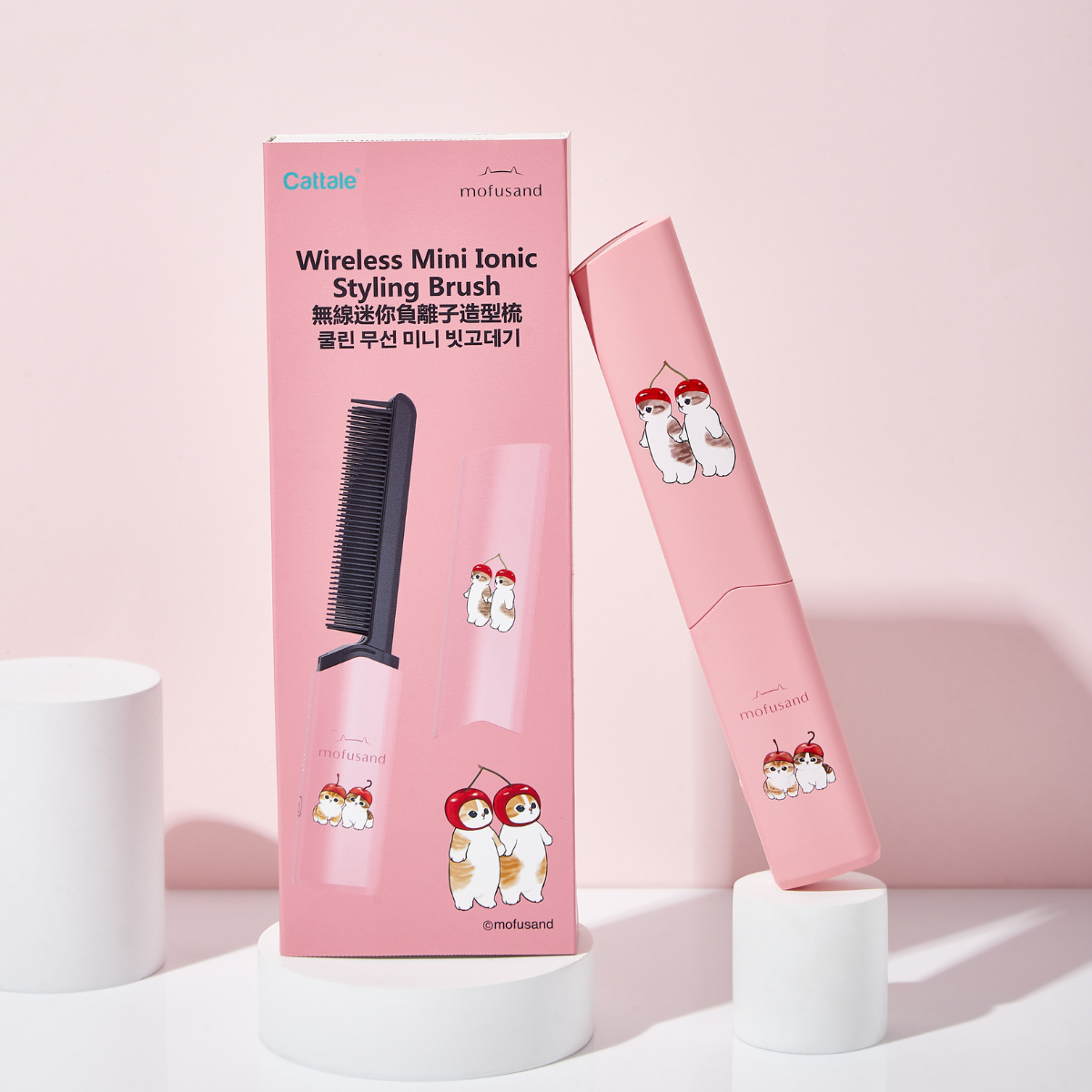 Cattale 跟 mofusand 合作推出無線迷你負離子直髮梳嘅造型產品。