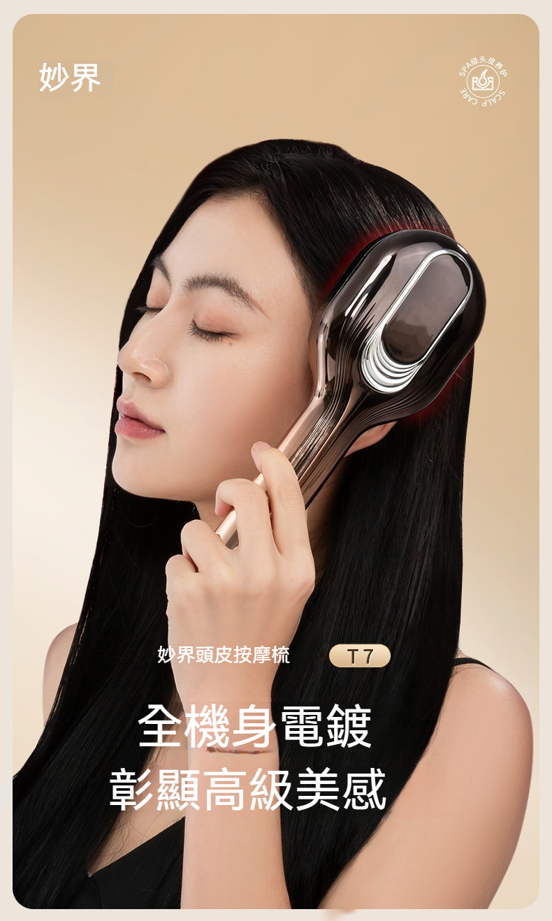 妙界頭皮按摩梳T7|全機身電鍍彰顯高級美感