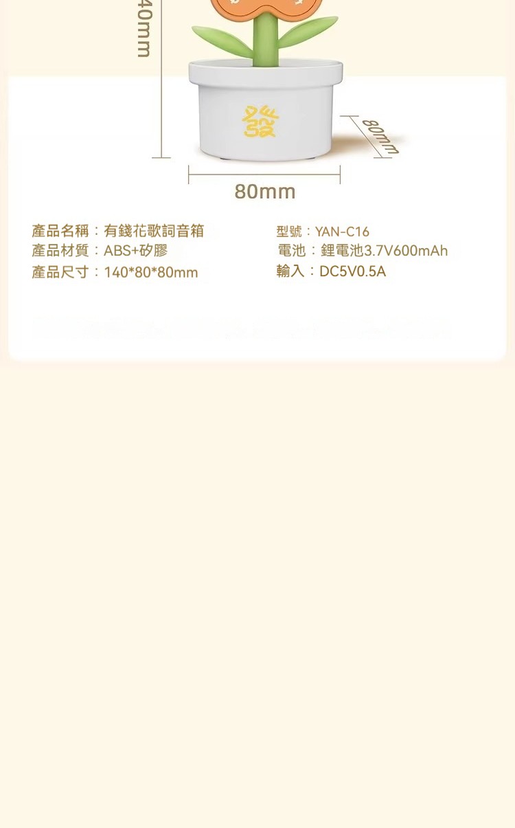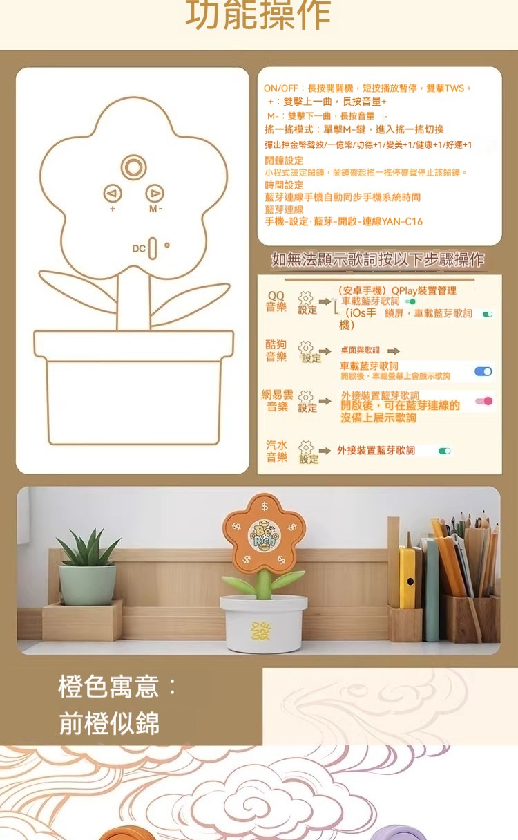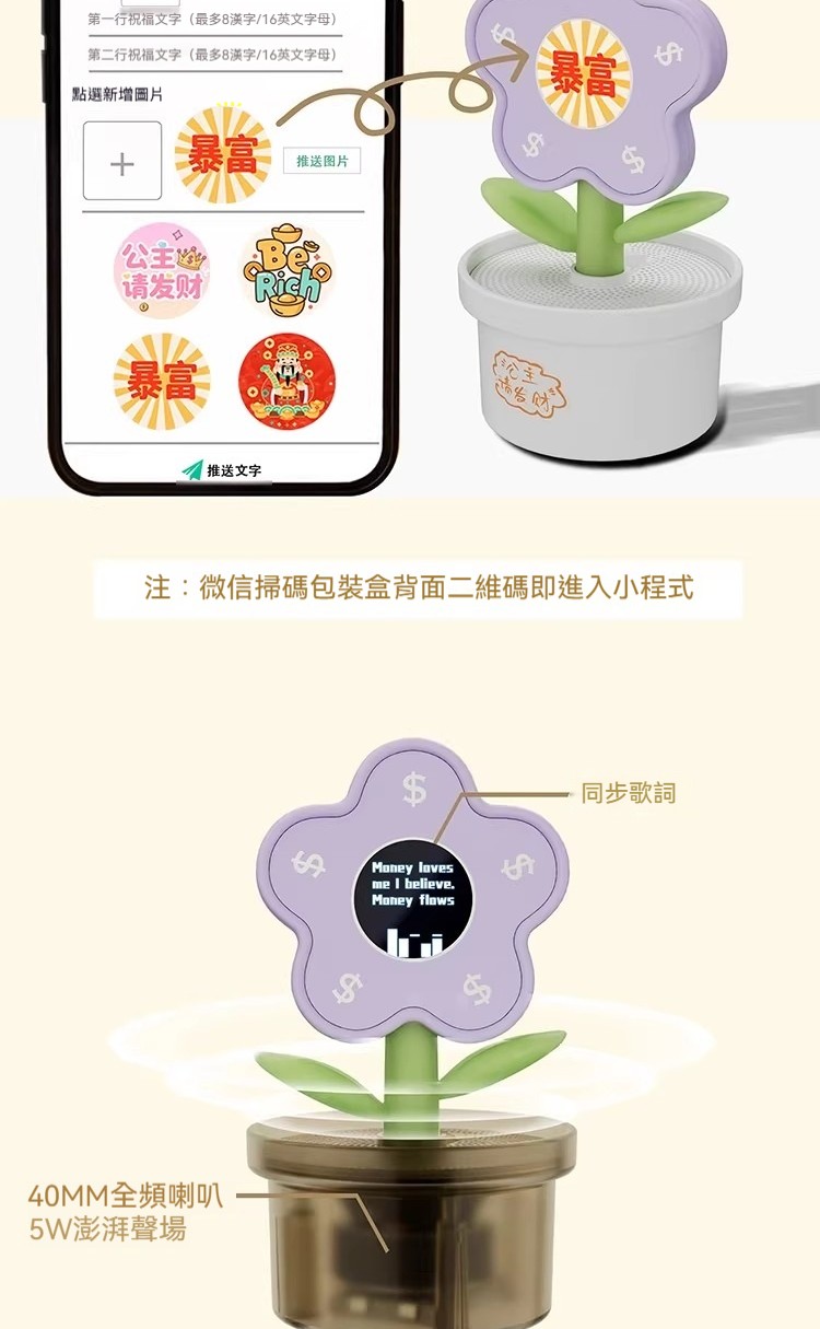 【有錢花歌詞音響 紫】擺件+音響+自定義祝福詞, 【有錢花歌詞音響 黃】擺件+音響+自定義祝福詞