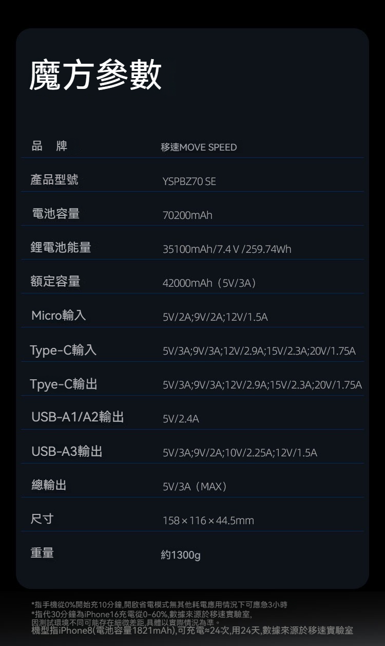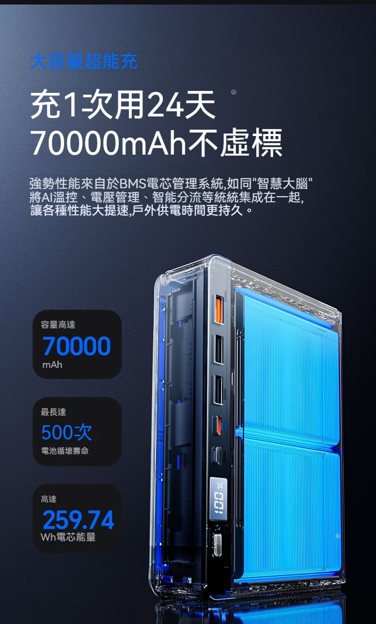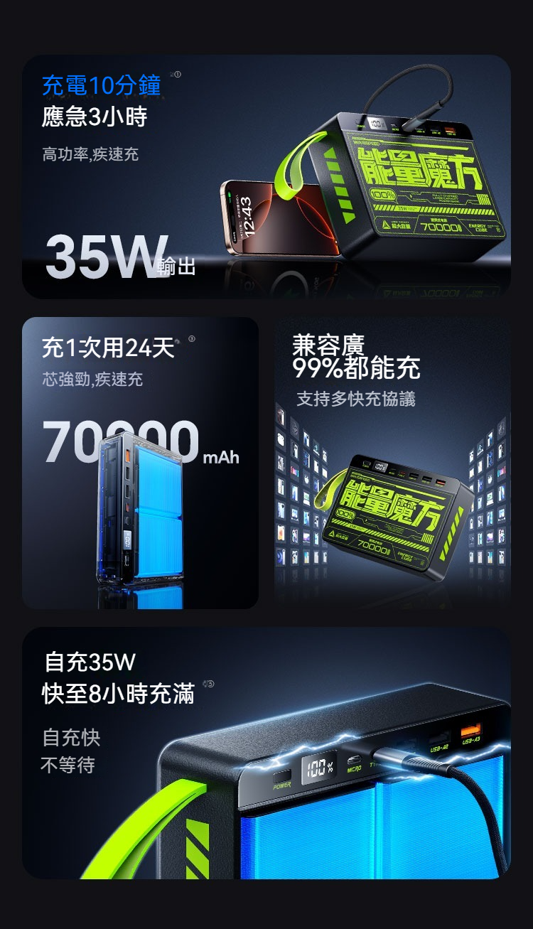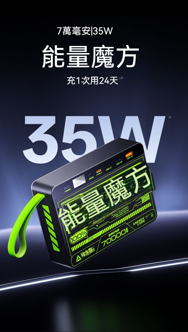 7萬毫安35W能量魔方充1次 用24天