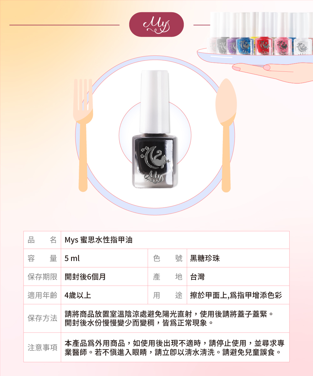 【Mys 水性無毒指甲油】-【黑糖珍珠】5ml (品牌直送)