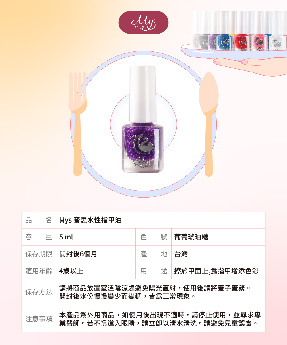 【Mys 水性無毒指甲油】-【葡萄琥珀糖】5ml (品牌直送)