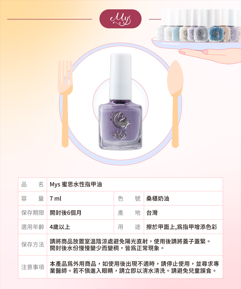 【Mys 水性無毒指甲油】-【桑椹奶油】7ml (品牌直送)