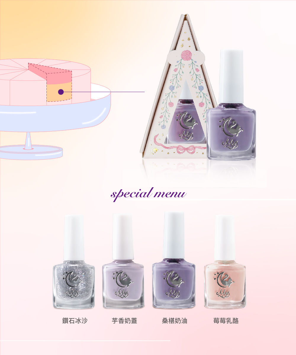 ●Mys 在瑞典語有「我的舒適時間」之意,希望每位女孩在塗上Mys指甲油,能享受放鬆愉悅的美好時光。