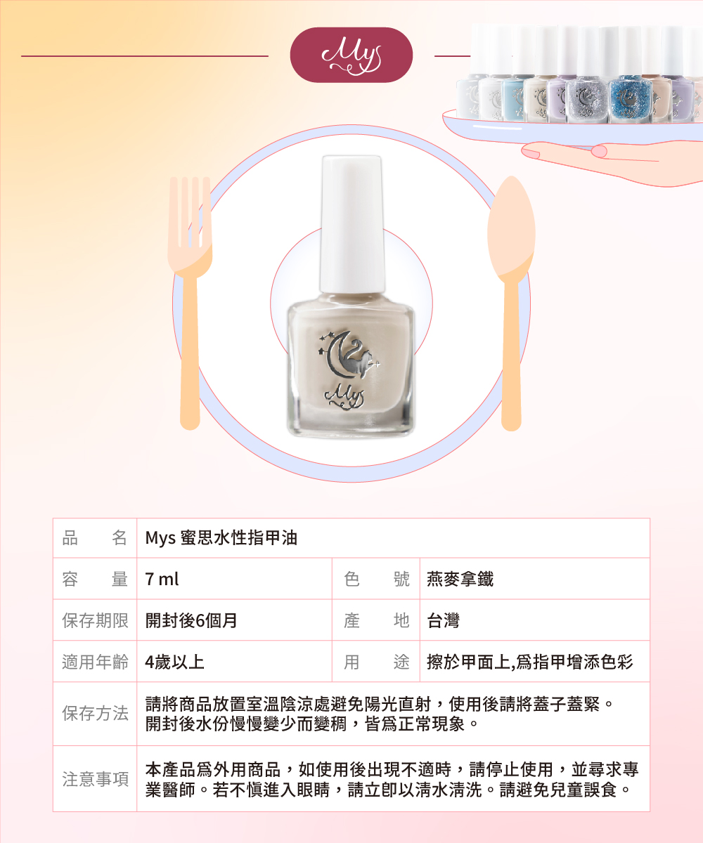 【Mys 水性無毒指甲油】-【燕麥拿鐵】7ml (品牌直送)