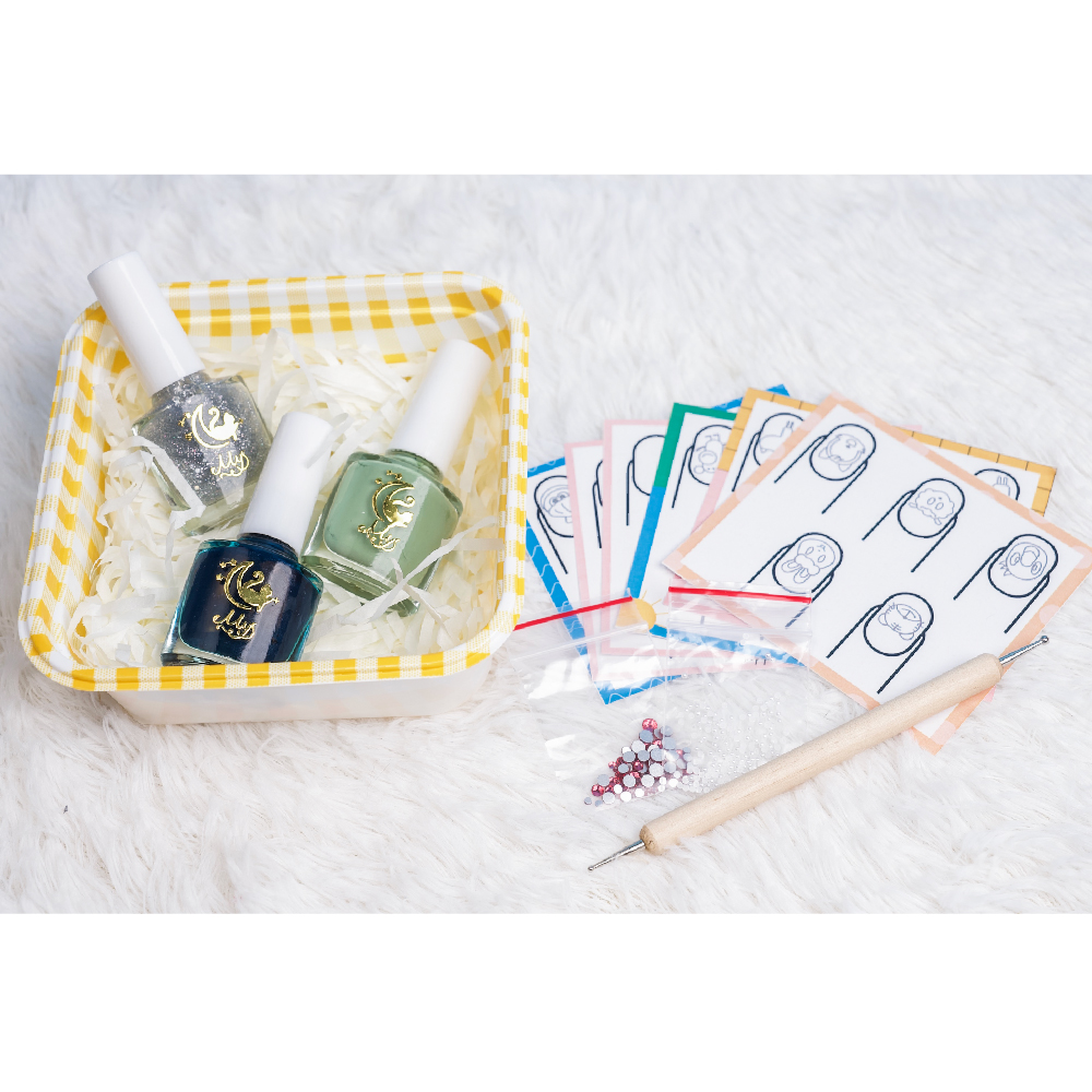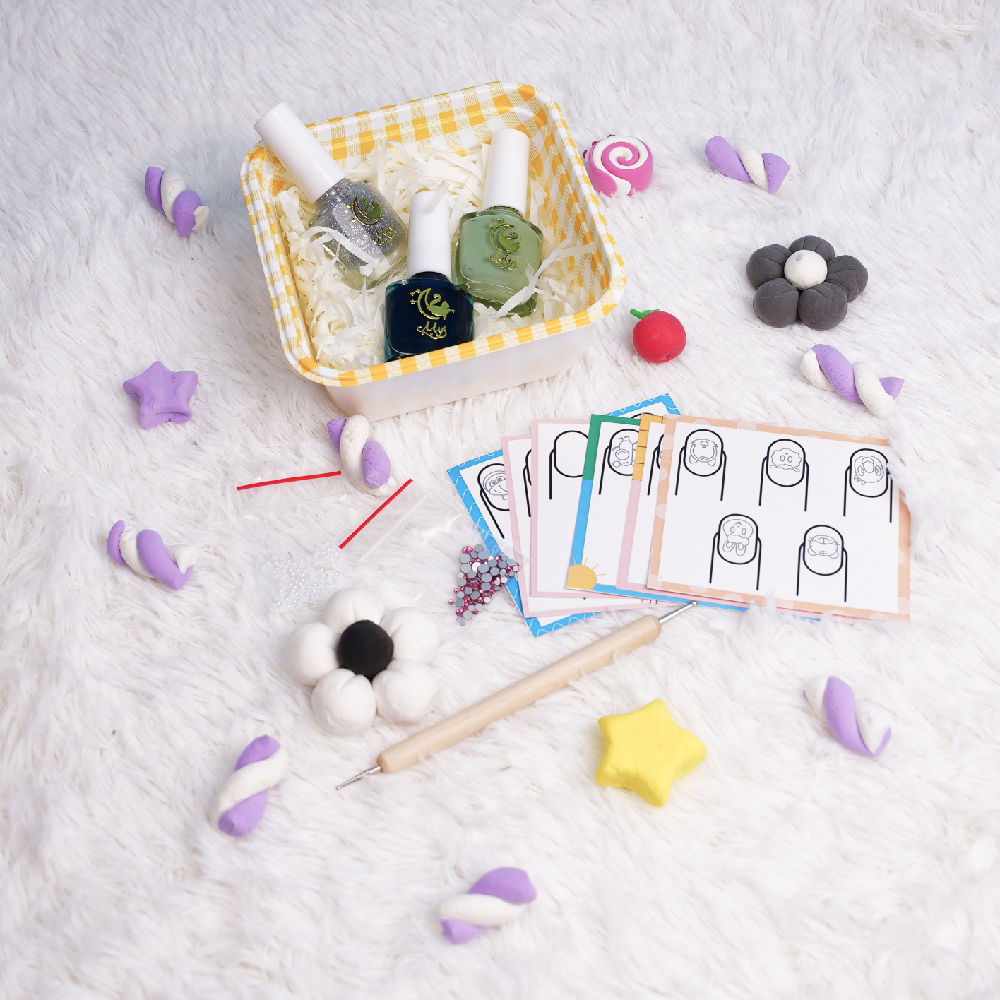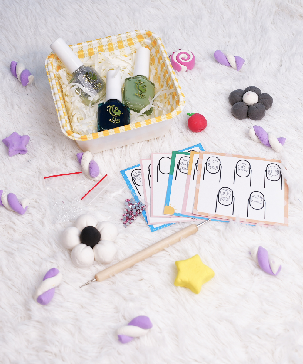 ●美甲師套-讓小朋友練習基本配色、線條、圖案等繪製,使用指彩刷頭更具挑戰性。