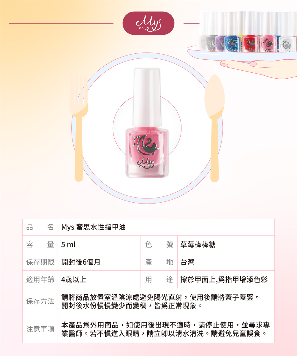 【Mys 水性無毒指甲油】-【草莓棒棒糖】5ml (品牌直送)