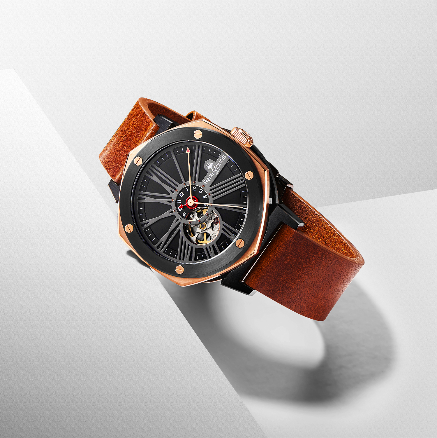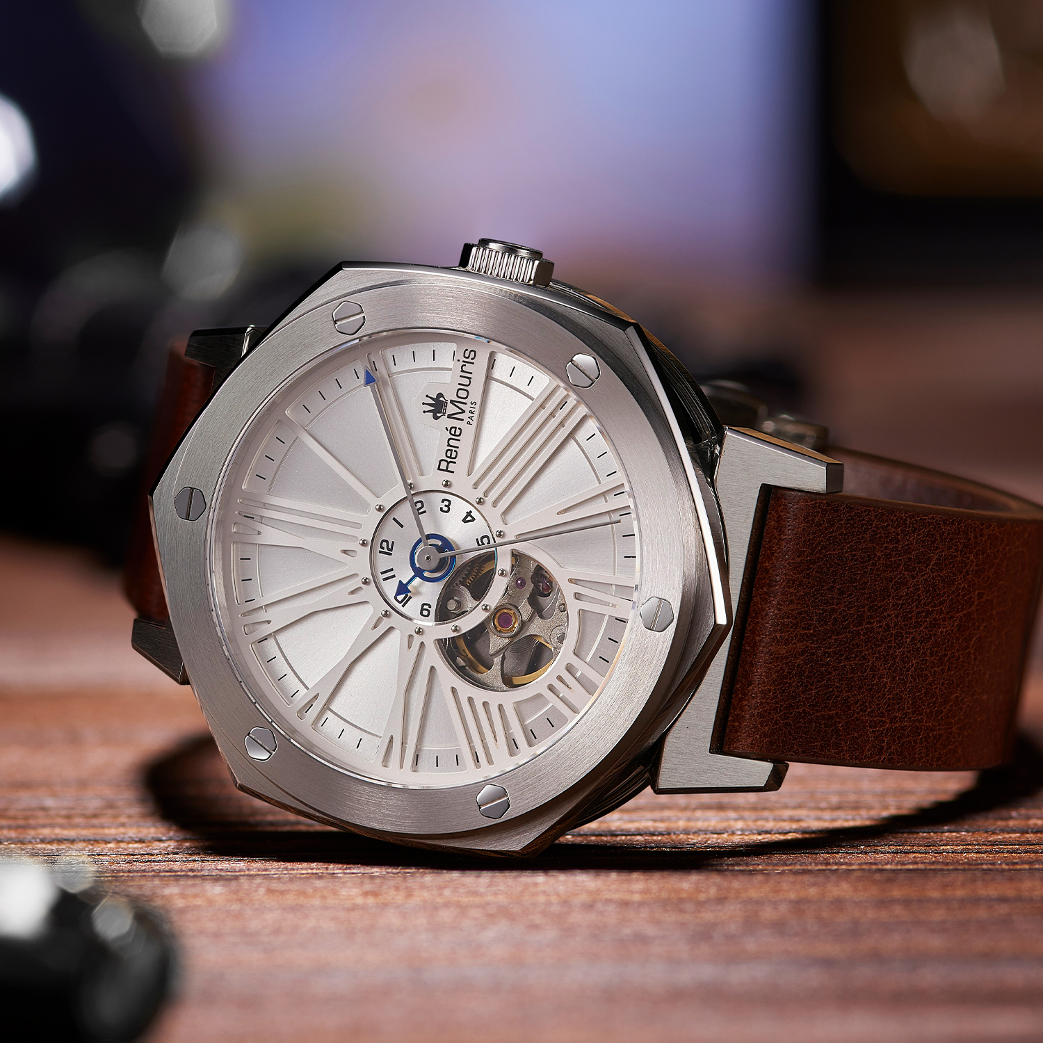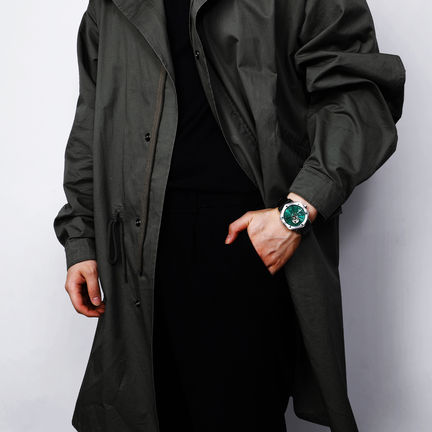 自動心跳: 自供電的日本自動機芯讓您無需電池即可準時走時。半鏤空錶盤展現其韻律脈動,展現令人著迷的機械男錶藝術。