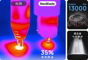 此外,刀片尖端在運轉時溫度始終保持在 65°C 以下,因此也不會燙傷皮膚。
