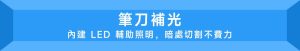 在光線不足的環境下,NeoBlade內建的 筆尖LED輔助照明,讓操作者依然能進行精細切割;在面對 模型製作、手工雕刻或細節修整…等情況,使用者 不再需要額外的燈光設置或調整工作空間,為使用者 提供清晰的視野、幫助精確定位,確保每一刀都能精準無誤。與傳統工具相比,這項功能大大提高了切割效率,減少了因為光線不足而帶來的困難,讓使用者可以專注於手頭的工作,無需擔心視野不清。