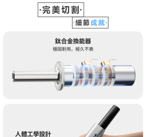 A: 這個問題完全可以理解!雖然刀片像普通美工刀一樣鋒利,但超音波振動並不會使其對皮膚造成更大的危險。像皮膚或矽膠這樣的柔軟材料實際上會吸收振動,所以它的切割效果與普通刀片一樣——超音波功能不會帶來額外的風險。