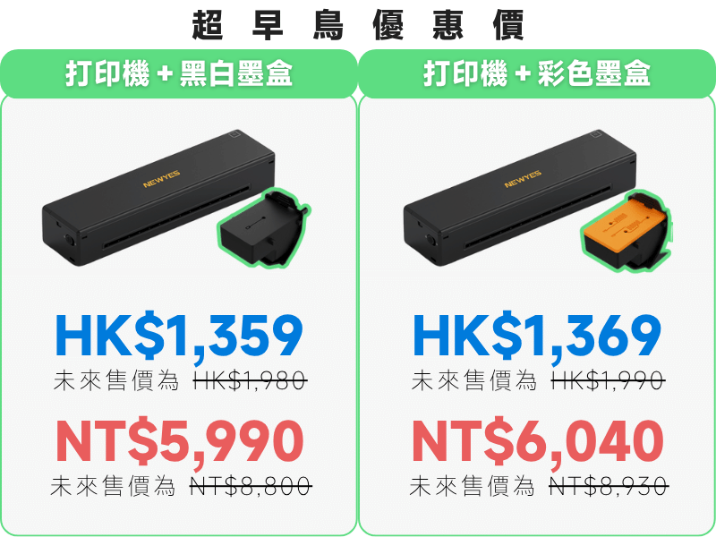 點擊此處>> 加購黑白/彩色墨盒:https://searchingc.com/collections/newyes-printer-addon/