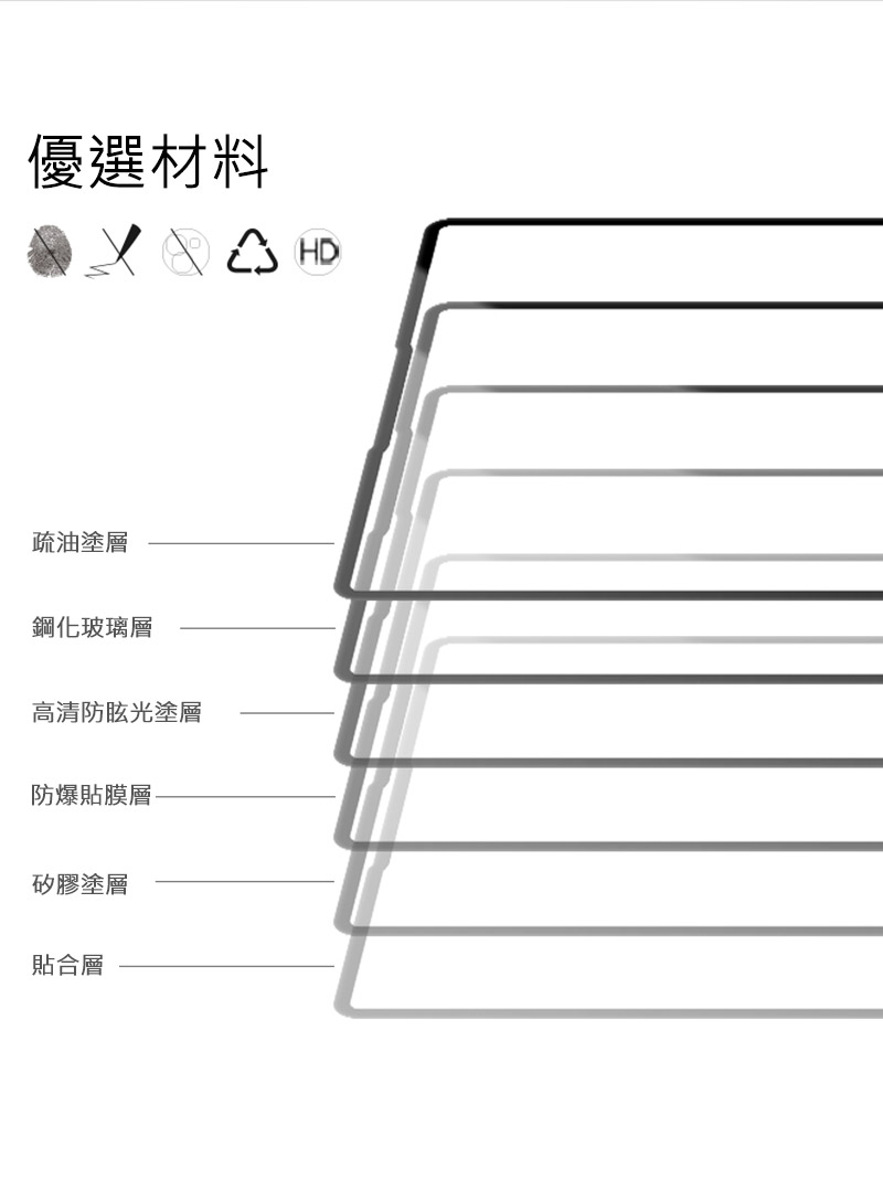 .選用日本進口AGC玻璃材質,防禦性能極佳,擁有極高透光率、高度還原螢幕原色彩
