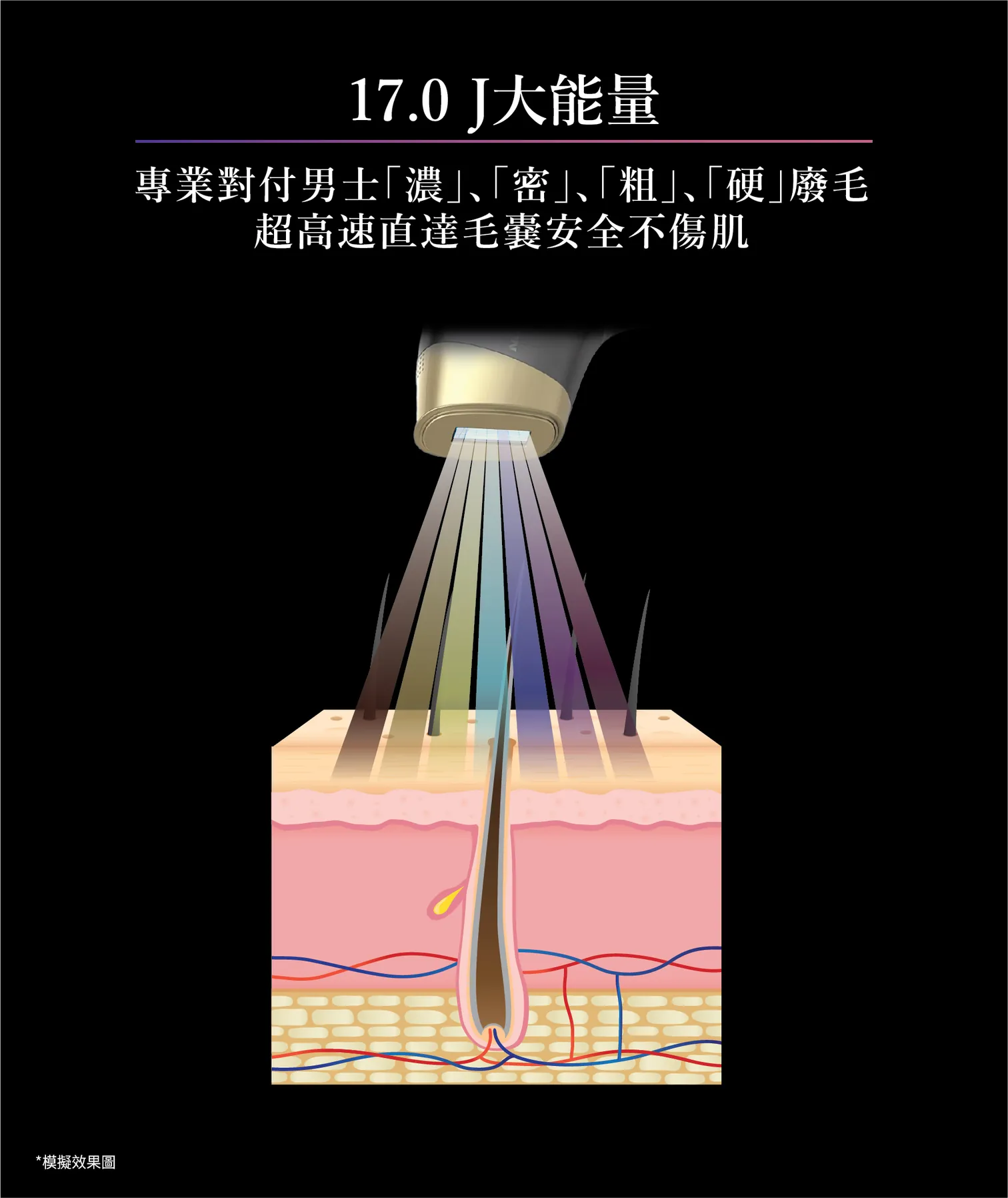 - 最大17.0 J 輸出,專業級應對男士濃厚體毛