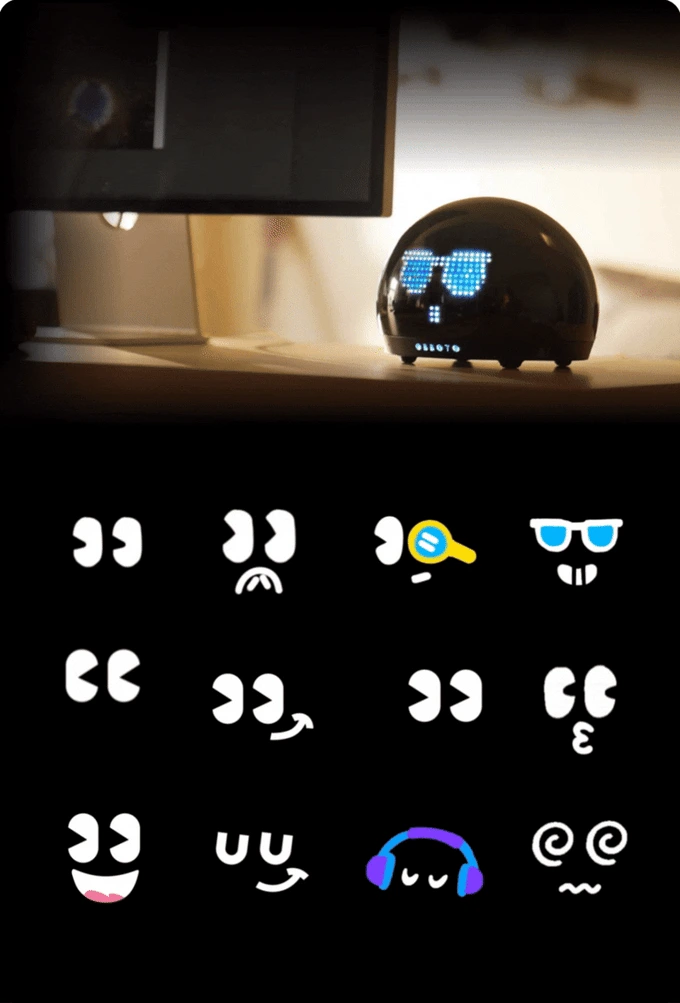 輕輕點一下 OBBOTO,牠就會用像素完美的表情符號回應你。一個眨眼、一個微笑、一絲喜悅的火花——這是牠說「嗨!」的方式。