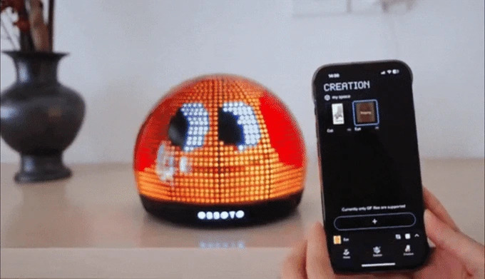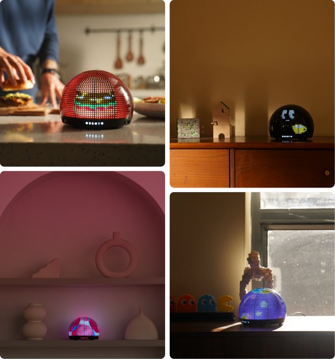 牠以柔和的日出光芒喚醒你,隨著你的播放列表輕快搖擺,當你輕觸牠的頭時,會投出一個像素化的眨眼,為你的空間增添一點靈魂。