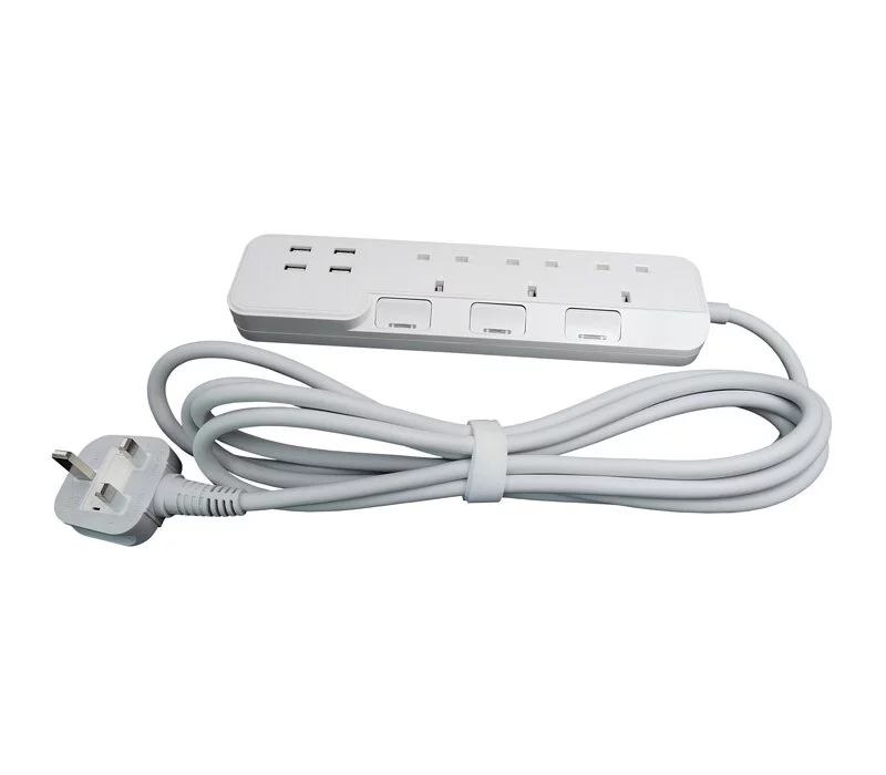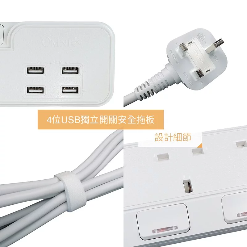 OMNI 歐麗 UK034-10 13A 3位安全拖板連4位USB充電插位