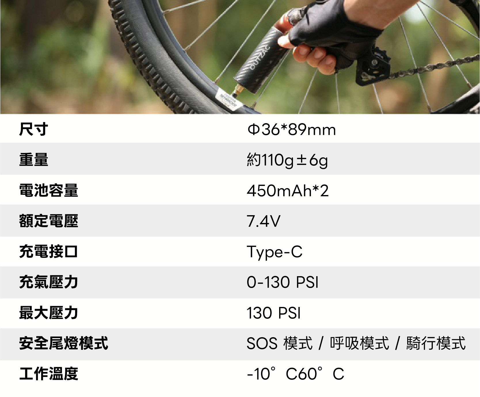 OUTZAC 充氣泵的尾燈專為訊號設計。
