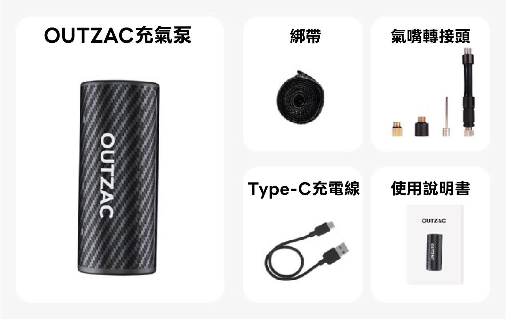 OUTZAC 採用可充電鋰電池,免除拋棄式 CO₂ 充氣筒或更換電池的浪費與麻煩。只需使用與手機相同的 Type-C 線材充電,隨處都能輕鬆補充電力。
