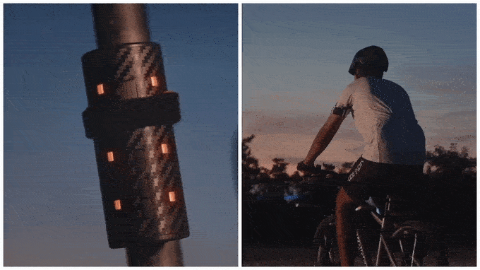 騎行模式快速閃爍三色,隨著車輪轉動創造醒目動感的警示效果。