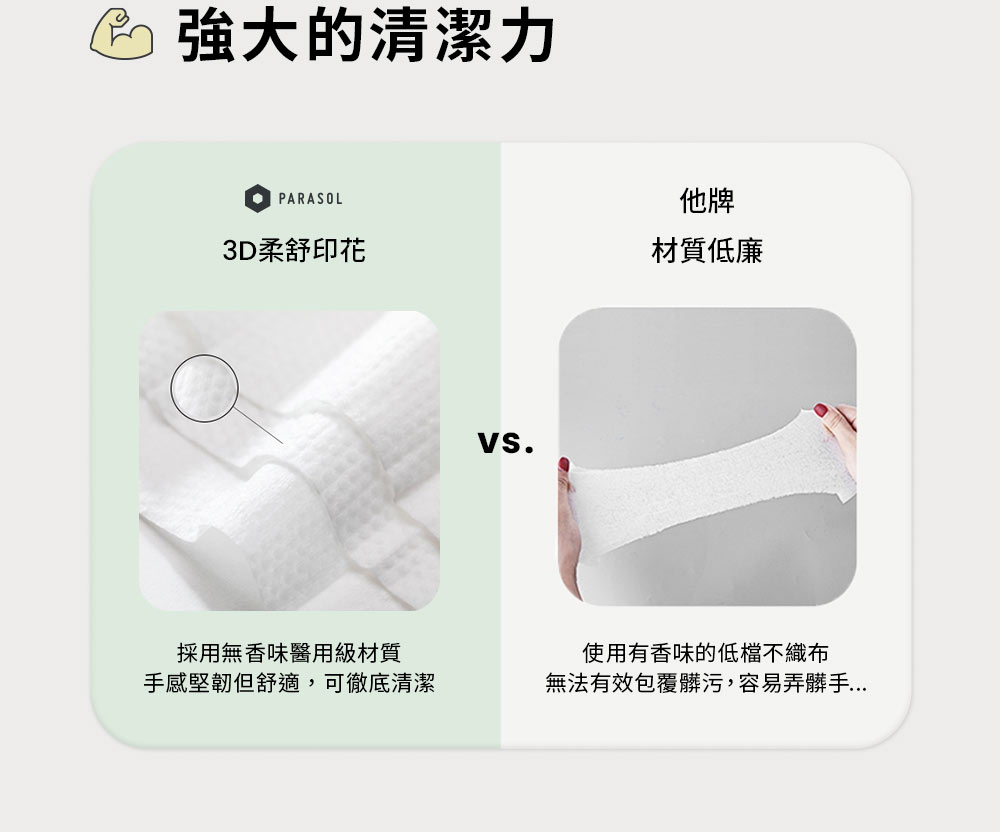 品名:Parasol Clear+Pure 極厚天然肌護濕紙巾 60抽/包