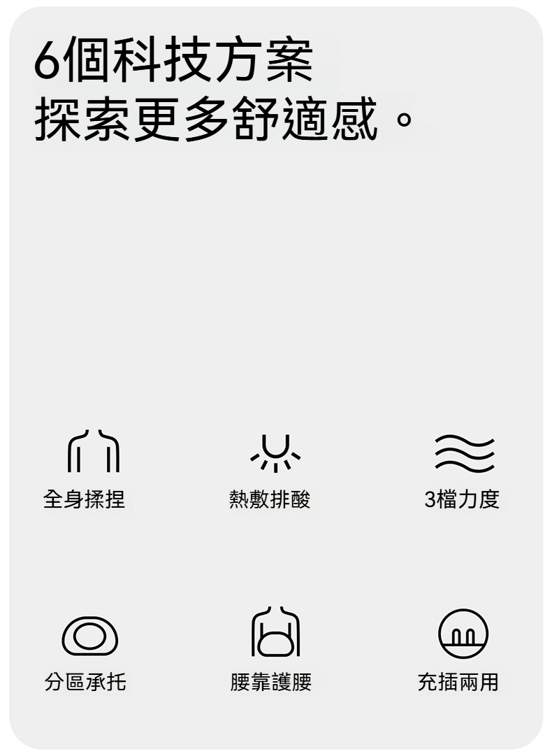 - 2200mAh大續航/貼合人體/久坐更舒適