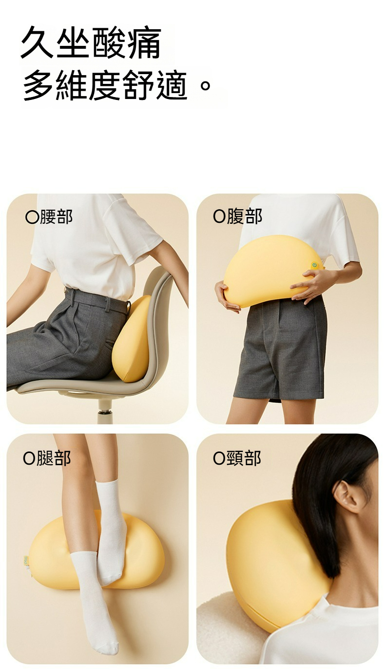- 貼合腰腹肩頸人體曲線/邊緣可彎全身按摩