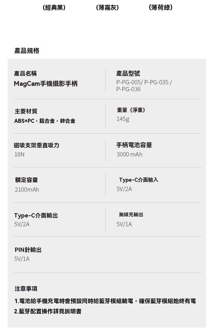 攝影手柄(經典黑), 攝影手柄(薄荷綠), 攝影手柄(薄霧灰)