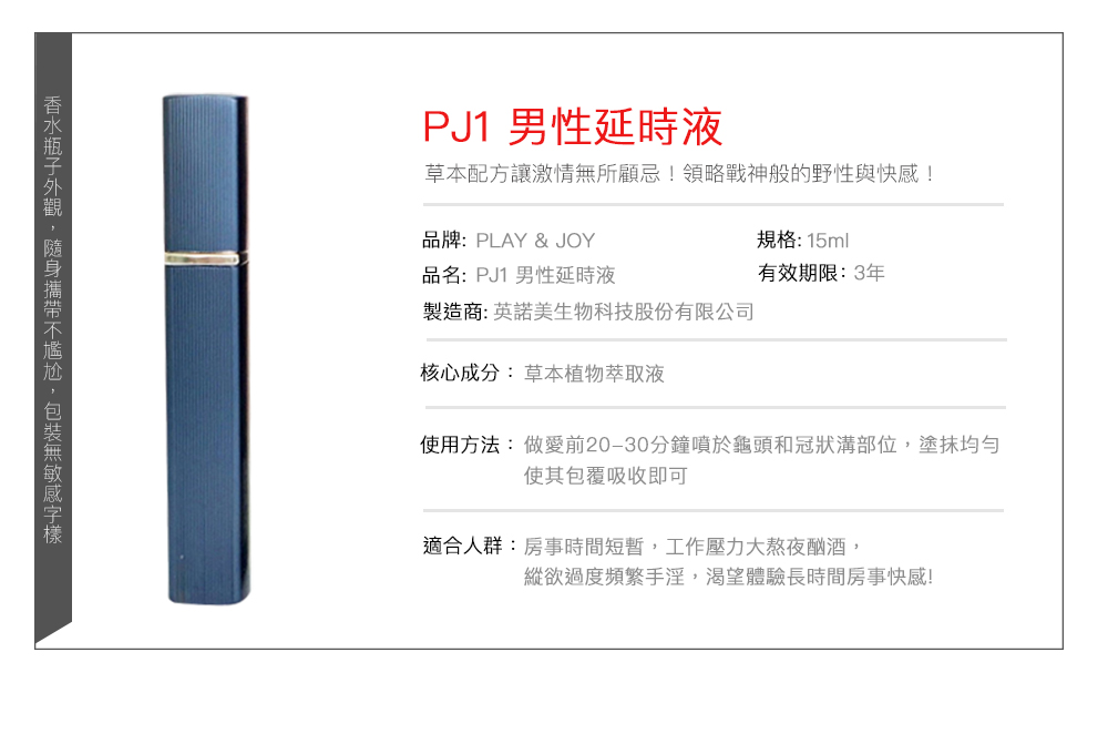 商品品名: PLAY & JOY PJ1 男性延時液 15ml