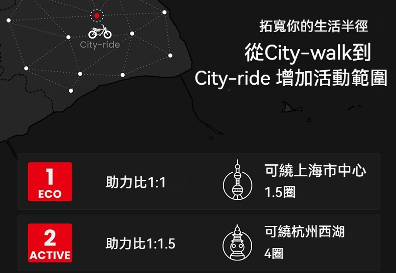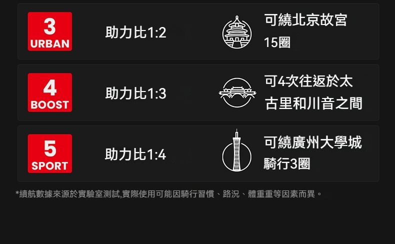 續航70~100km|適用於1檔電助力模式