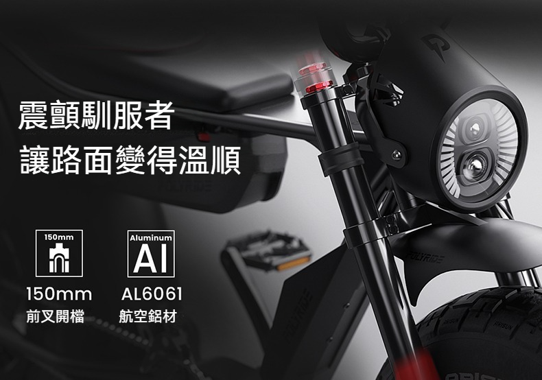 前叉:六系鋁合金材質減震前叉BoostTM15*150mm筒轴,柱式碟刹,減震雙調節盾