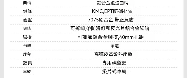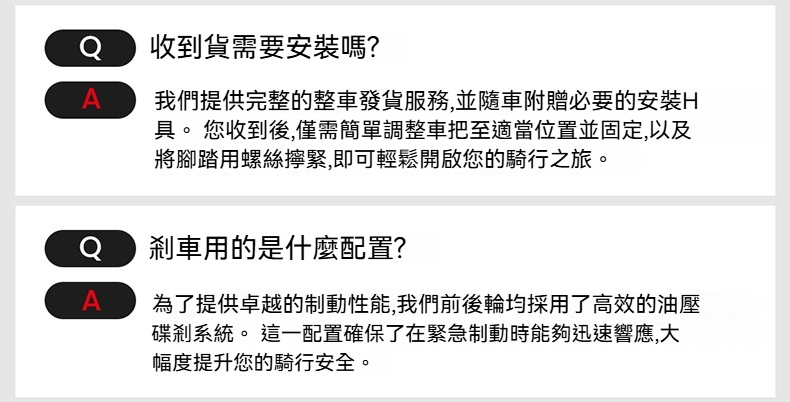 刹車:前後油壓碟刹,180mm碟盘