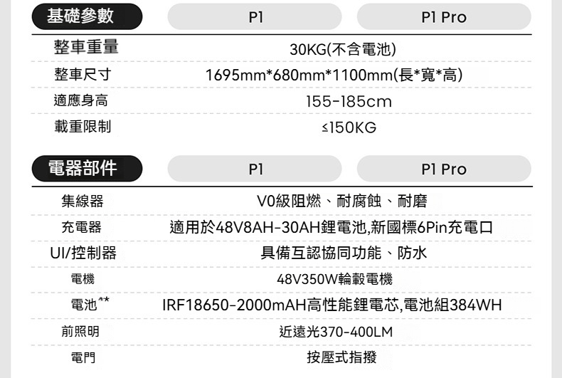 電器部件:P1/P1 Pro