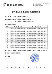 富邦產品責任險新台幣壹千萬元整 每年持續投保