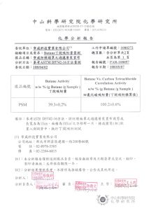 四氯化碳飽和吸附量(ASTM-D5742-95法量測):109.9±1.2% NO.PAR-103.067