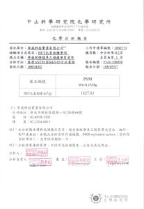 BET比表面積分析(ASTM-D3663-92法量測):1,862±12m2/g NO.PAR-103068