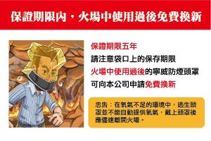 火場使用過後的寧威防煙頭罩,可向本公司申請免費換新