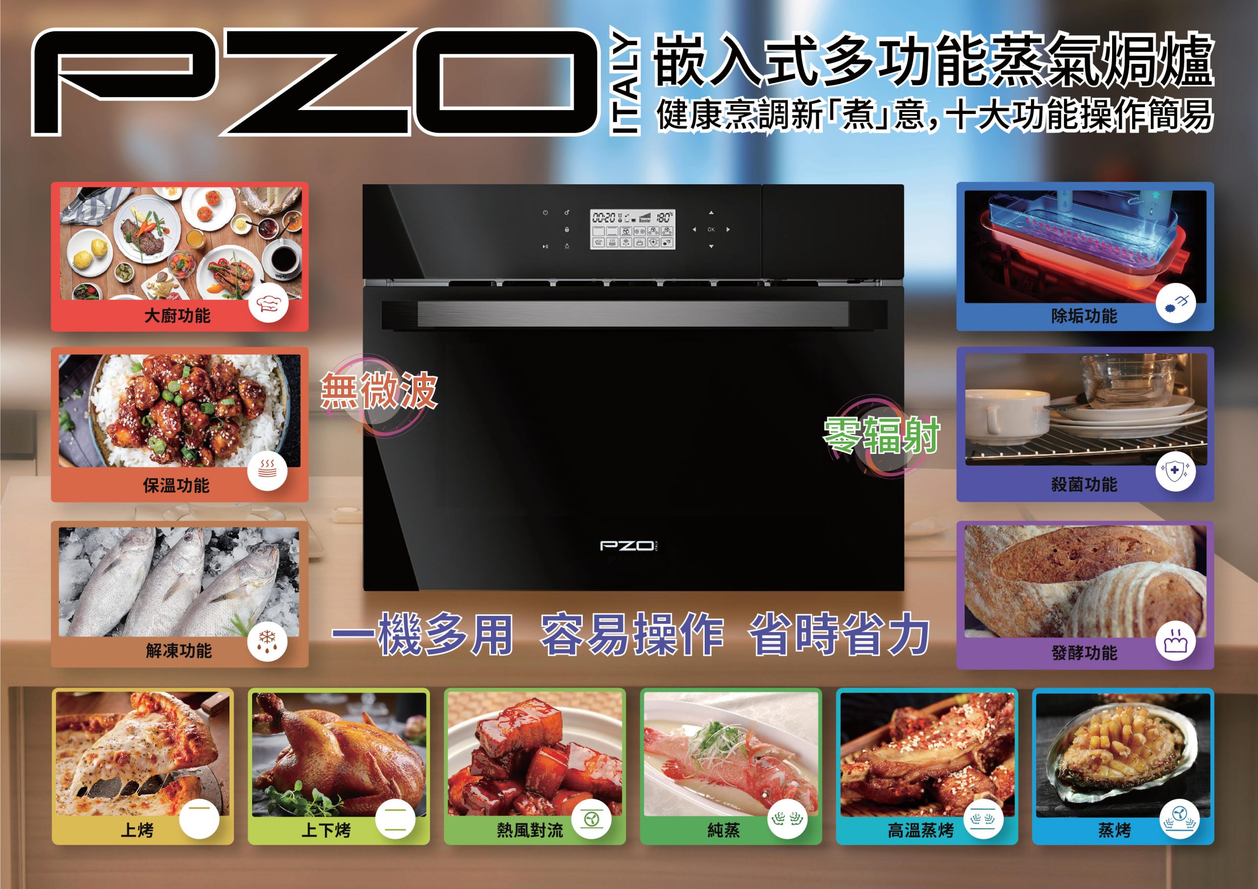 產品名稱:PZO輕觸嵌入式多功能蒸氣焗爐