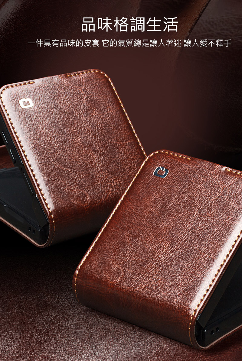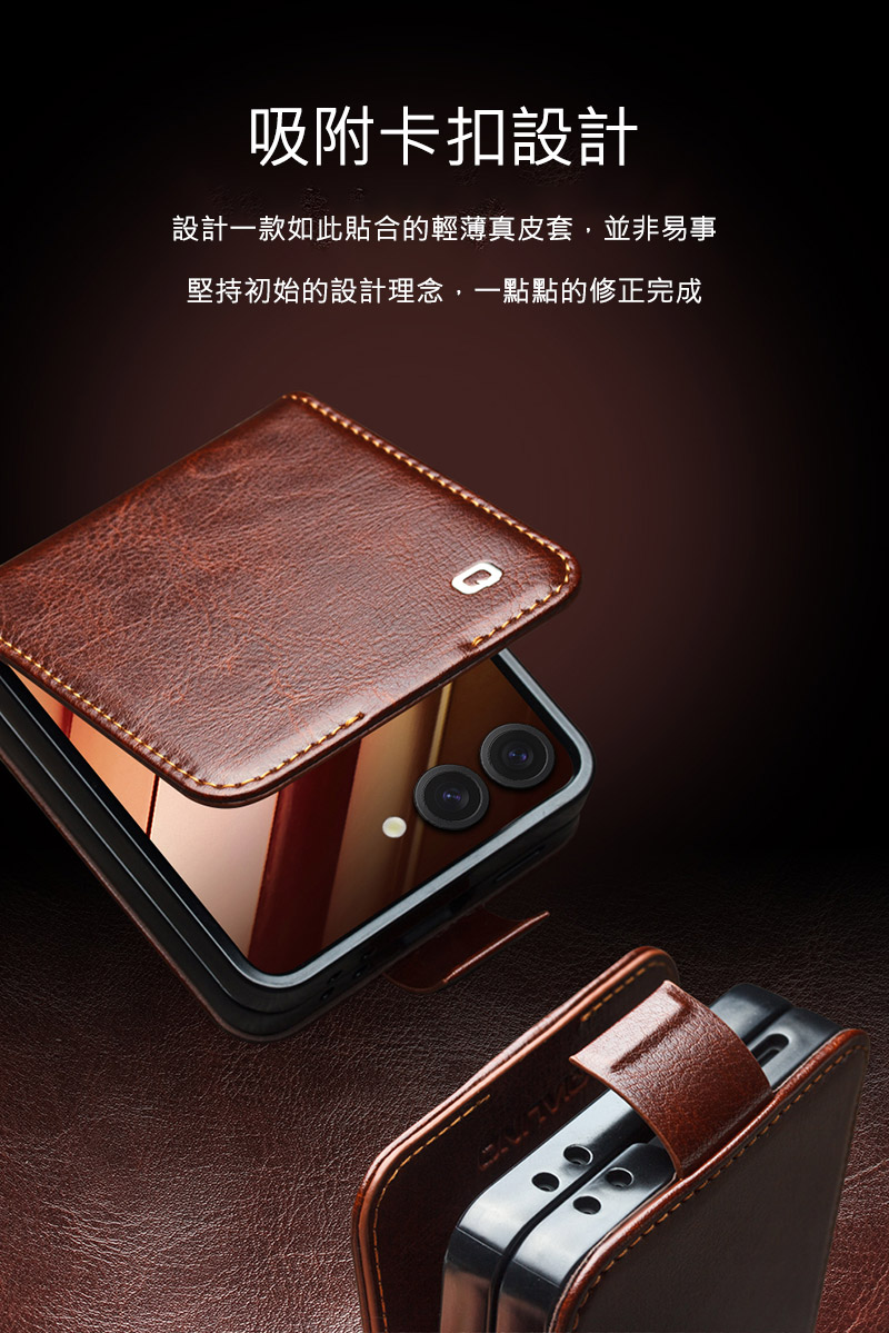 QIALINO SAMSUNG 三星 Galaxy Z Flip 7 5G 真皮經典皮套(磁扣款) 牛皮 手機殼 (品牌直送)