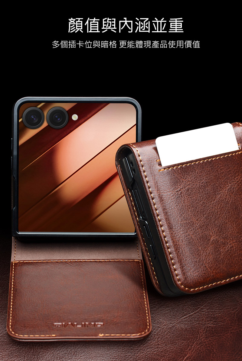 搶先留言 “QIALINO SAMSUNG 三星 Galaxy Z Flip 7 5G 真皮經典皮套(磁扣款) 牛皮 手機殼 (品牌直送)”