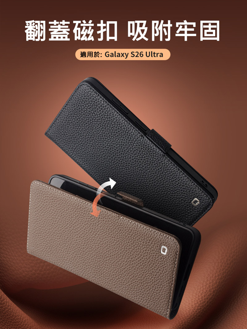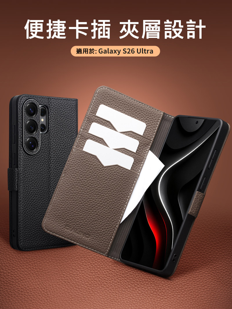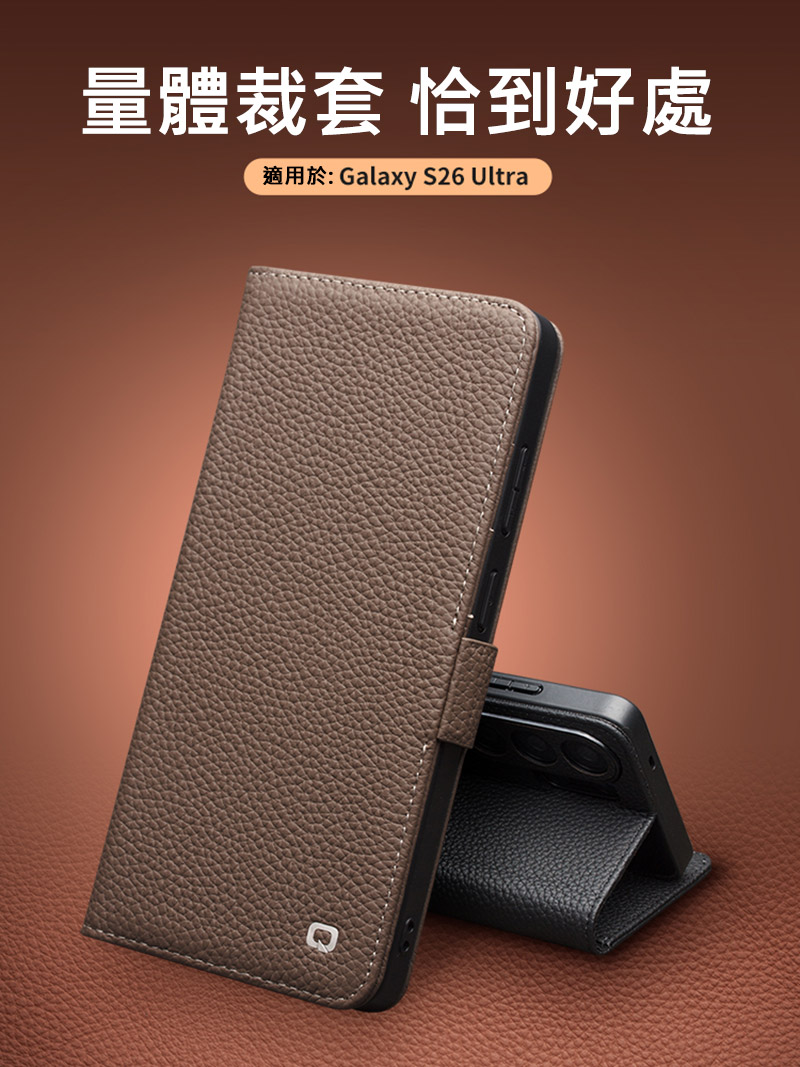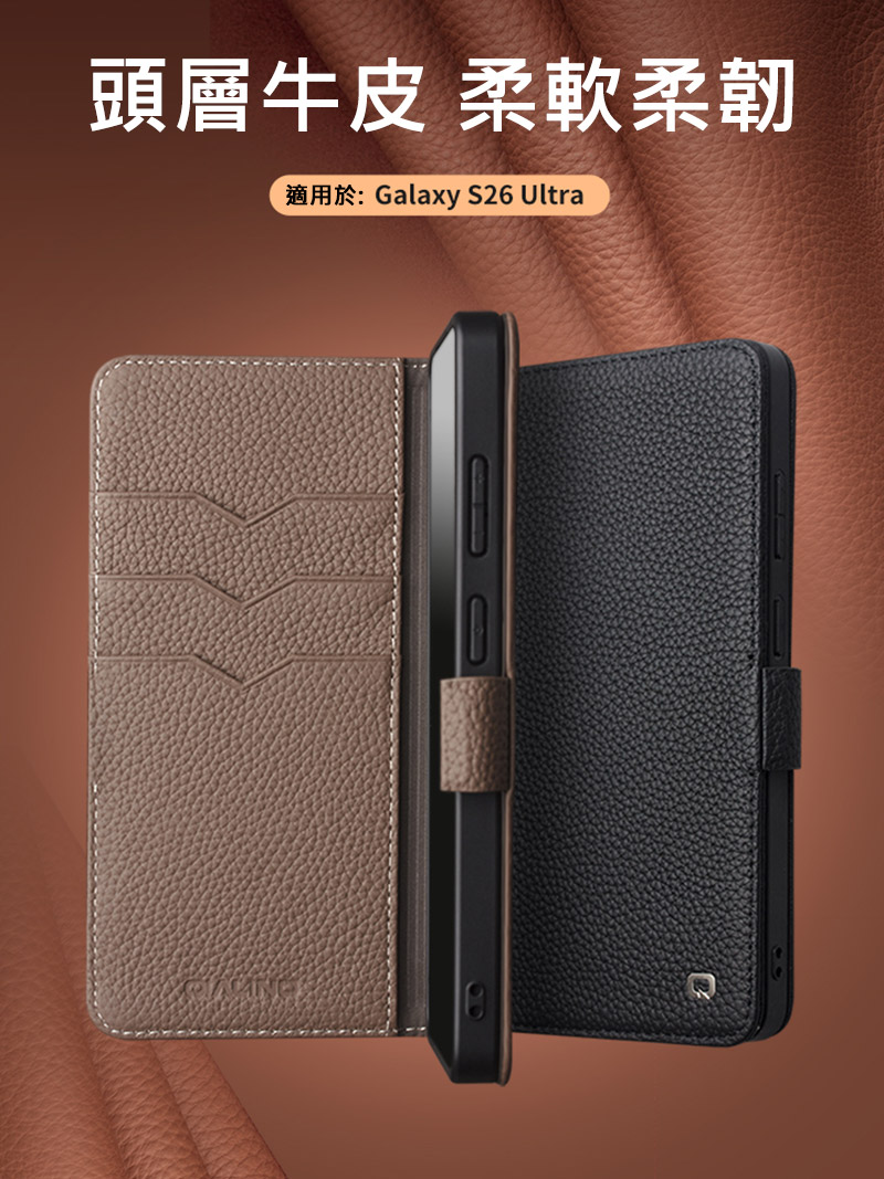 QIALINO SAMSUNG 三星 S26Ultra 5G 真皮荔枝紋皮套 牛皮 手機殼 (品牌直送)
