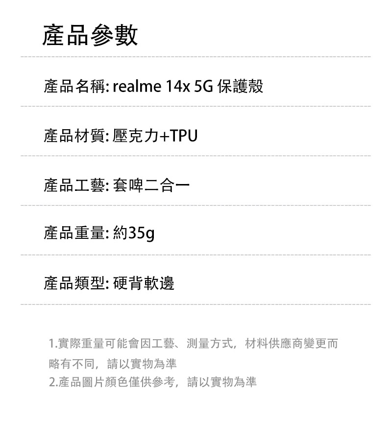 搶先留言 “QinD realme 14x 5G 雙料太空殼 手機殼 雙料殼 (品牌直送)”