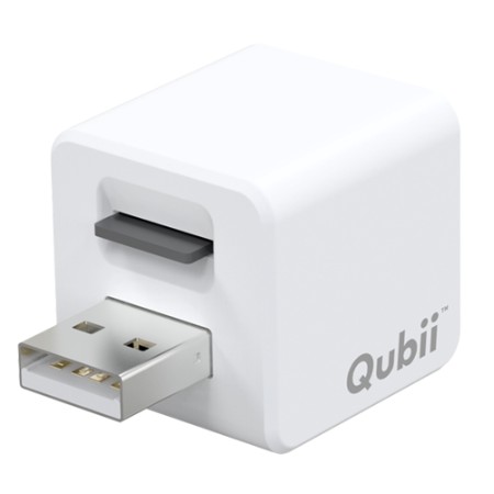 簡單將 Qubii 插在 iPhone 充電器後面,再連接充電線,立即享有自動備份功能!